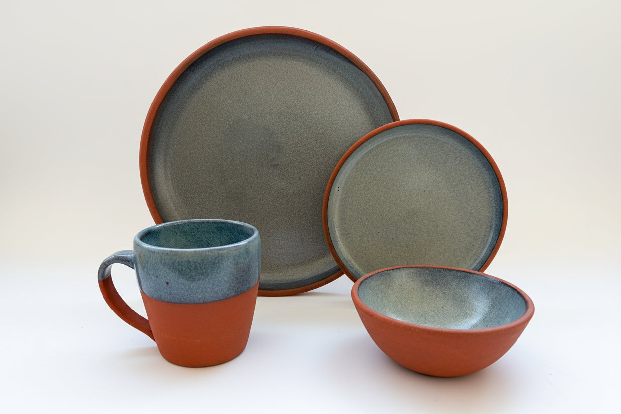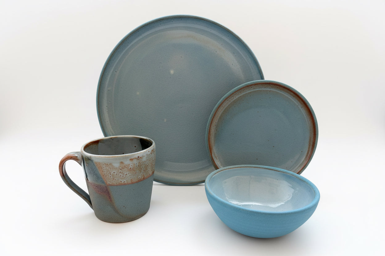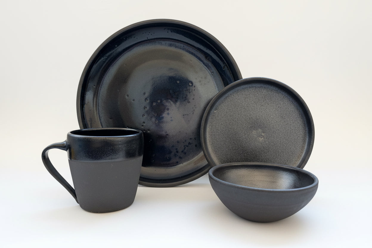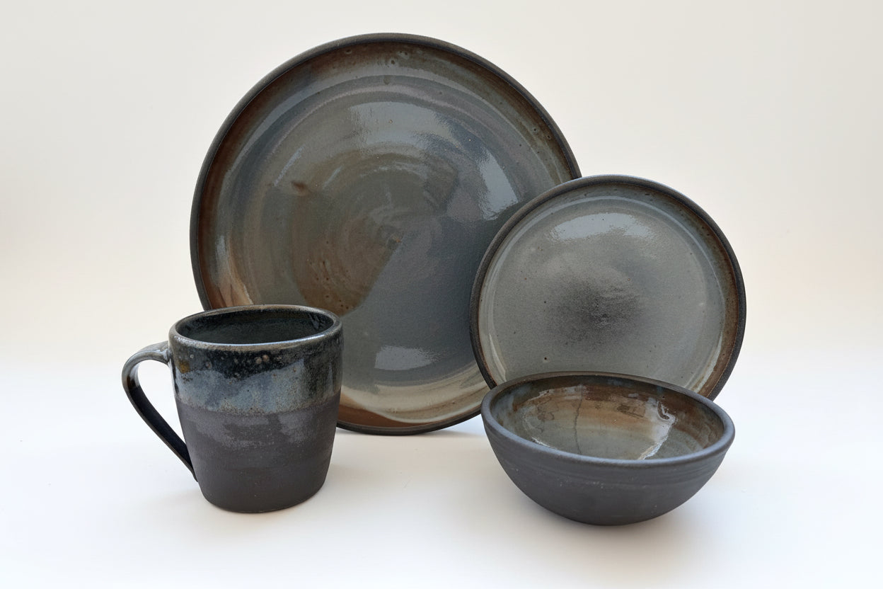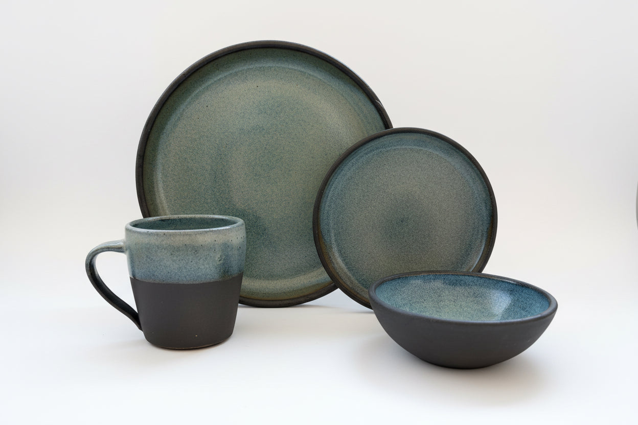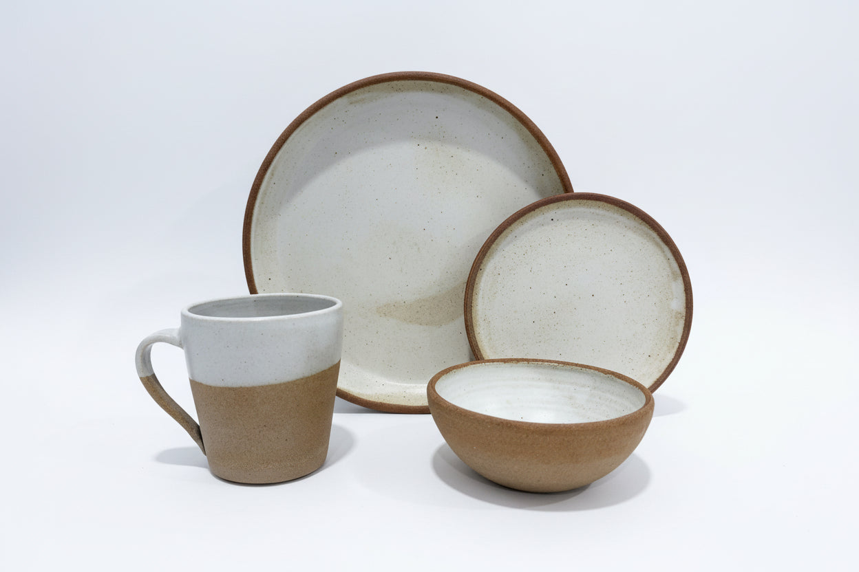 The Dinner and Dessert Set contains four of the signature Prairiewares forms: Dinner Plate, Mug, Small Bowl and Dessert Plate. With this four piece set, you’ll be equipped to eat dinner and enjoy servings of desserts and coffee. This thoughtfully curated set by Denver and Bobbi Jorgenson includes four of our most versatile and loved forms. They are a great addition to any family gathering or event.